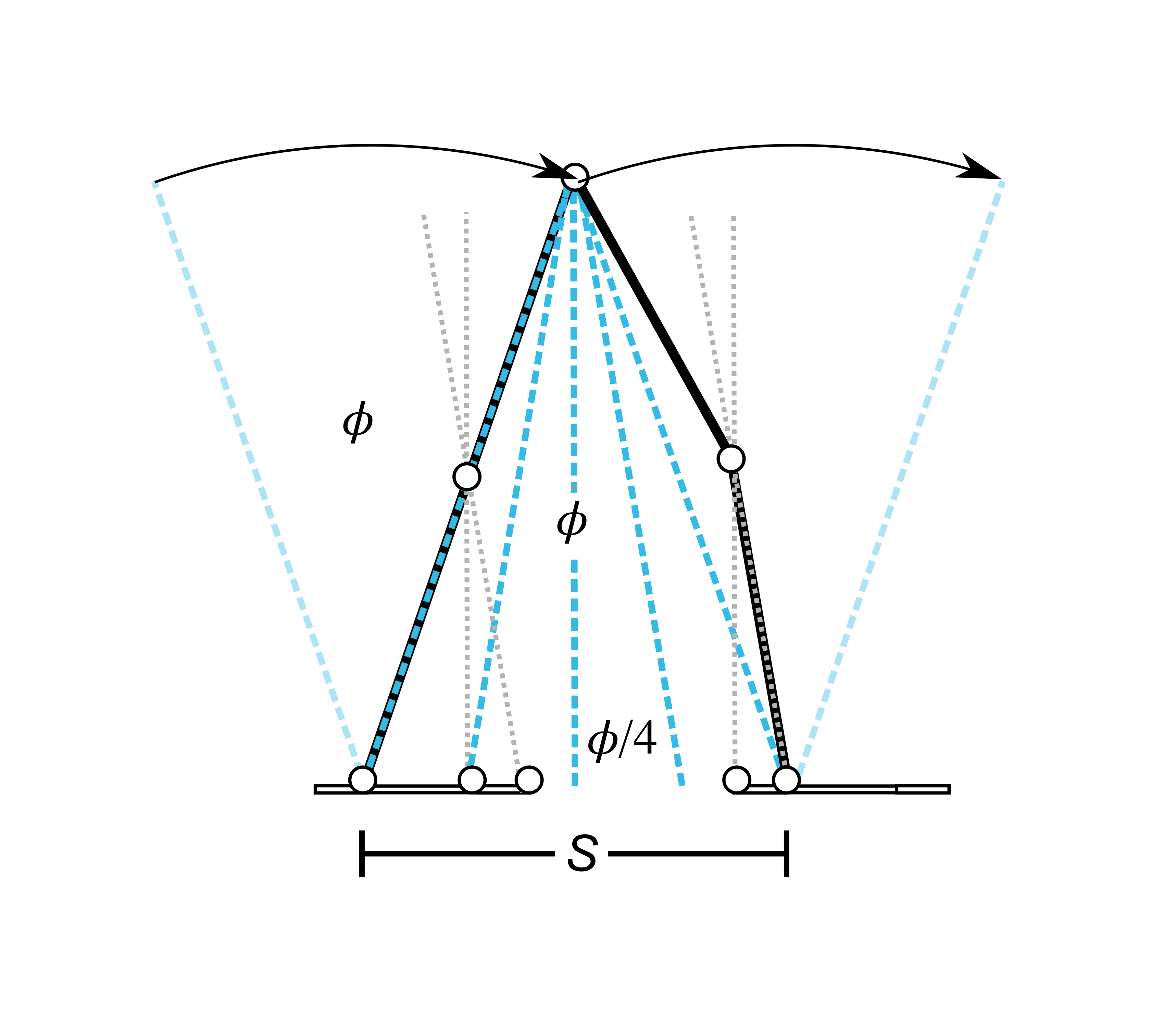 The linkage geometry that results in exactly even spacing of virtual legs looks like this: