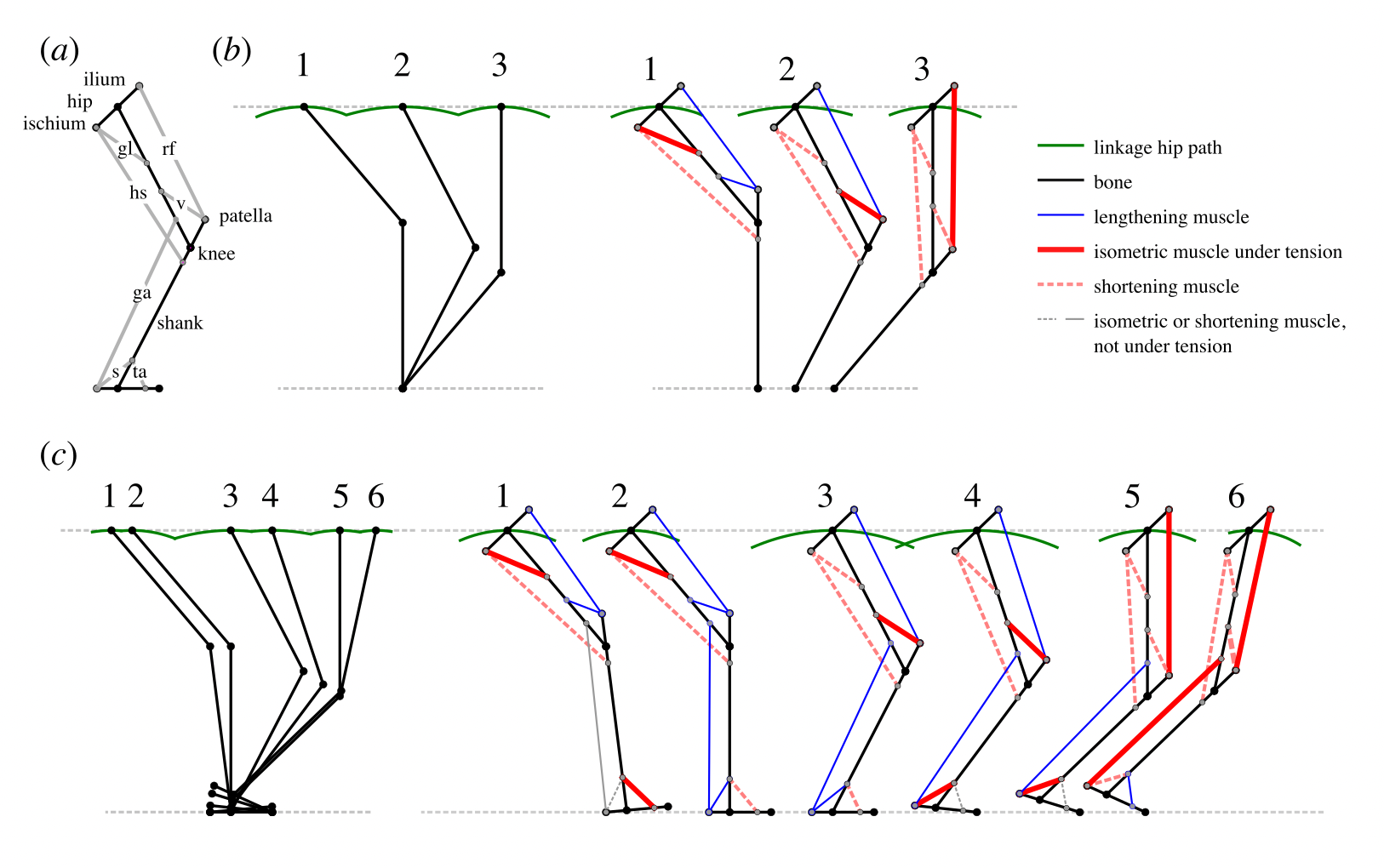 Note that these models do not include anything to do with springs. The equivalents of bicycle tyres and suspension are deliberately missing. But it is easy to imagine where springs – such as the Achilles – might become unloaded and recoil helpfully in late stance.