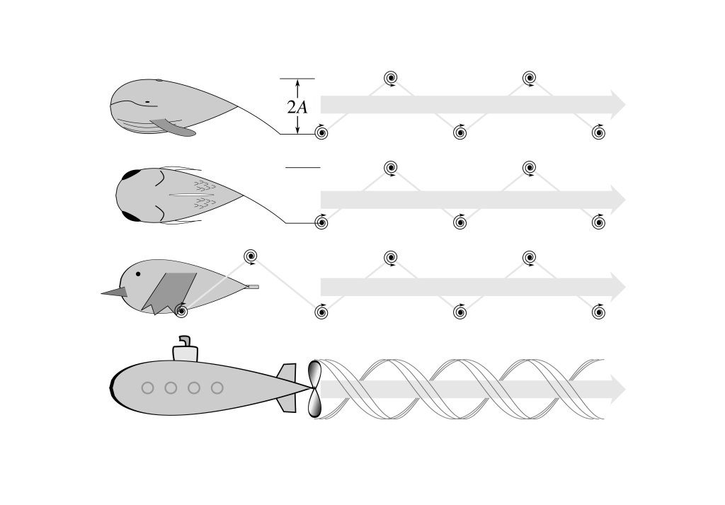This paper draws a parallel between the motions of fins, wings and flukes when producing thrust to the geometry of an efficient propeller. It shows that animals move their ‘foils’ in certain ways not because of some interaction with the vortex wake, but because it provides the balance between ineffective thrust production (too slow) and excess power demand (too fast). It does suggest that animals flap their foils a little slower than would be ideal in terms of aerodynamic efficiency, but that this loss is relatively small. And there are many reasons why oscillating your wings or fins a bit slower might be advantageous – including avoiding the costs of accelerating masses and improving the conditions for muscles to provide power economically.